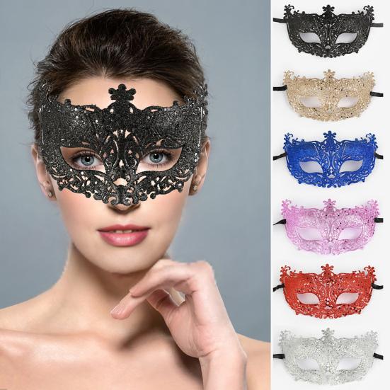 Masquerade half face mask features exquisite craftsmanship with intricate hollow carving and three-dimensional decoration, offering a high-end look beyond cheap plastic alternatives. Available in six vibrant colors black, gold, blue, pink, red, and silver this mask easily complements various outfit styles. Its shimmering texture is enhanced by fine glitter powder that catches the light, making you the center of attention at any event.