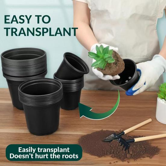 This set of plastic seedlings pots features small drainage holes at the bottom, ensuring proper water runoff and soil aeration to prevent rootlet rot. Made from durable, lightweight plastic, these pots are resilient and maintain their shape even when compressed.
