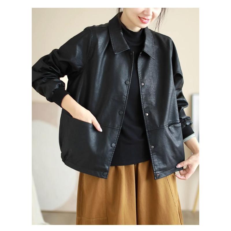 Loose Casual Leather Jacket Short Lapel Korean Style Versatile Motorcycle