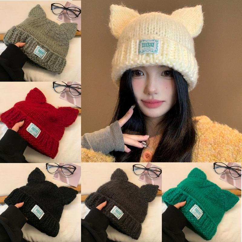 This soft cats ear knitted hat winter snow hat is accessory for women and girl who look to add festival fun to their winter holiday season.