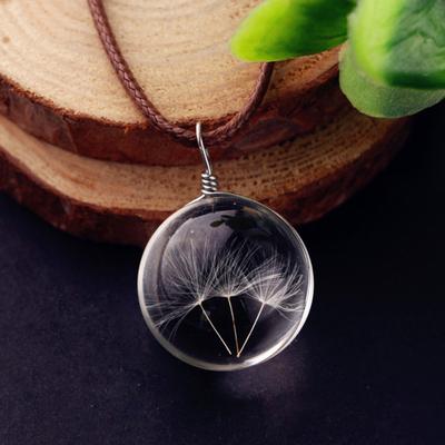 Glass Pendant Necklace Natural Dandelion Seed Wishing Glass Beads Handmade Dandelion Necklace