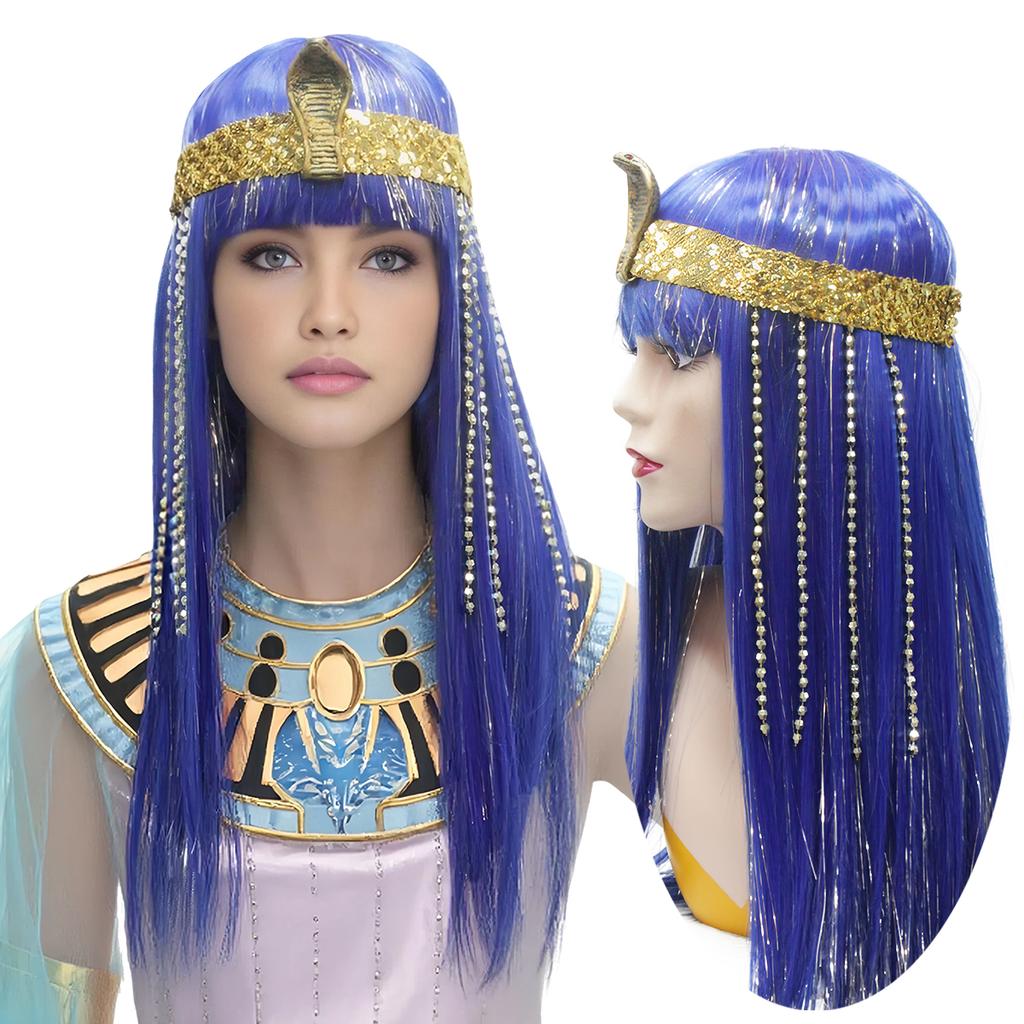 Blue Straight Fringe Synthetic Wig Cleopatra Snakehead Headwear with Wig Queen of Egypt Wig