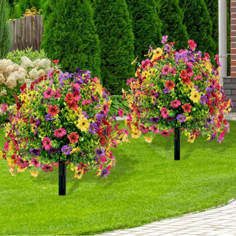 1PCS UV-Resistant Artificial Straight Insert Flowers, Ball-Shaped Outdoor Daisy Eucalyptus Potted Plants Decor