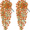 2pcs Hanging Artificial Flowers Plants -Outdoors Spring Summer Decoration, Faux Hanging Flowers Garden Porch Window Home Decor
