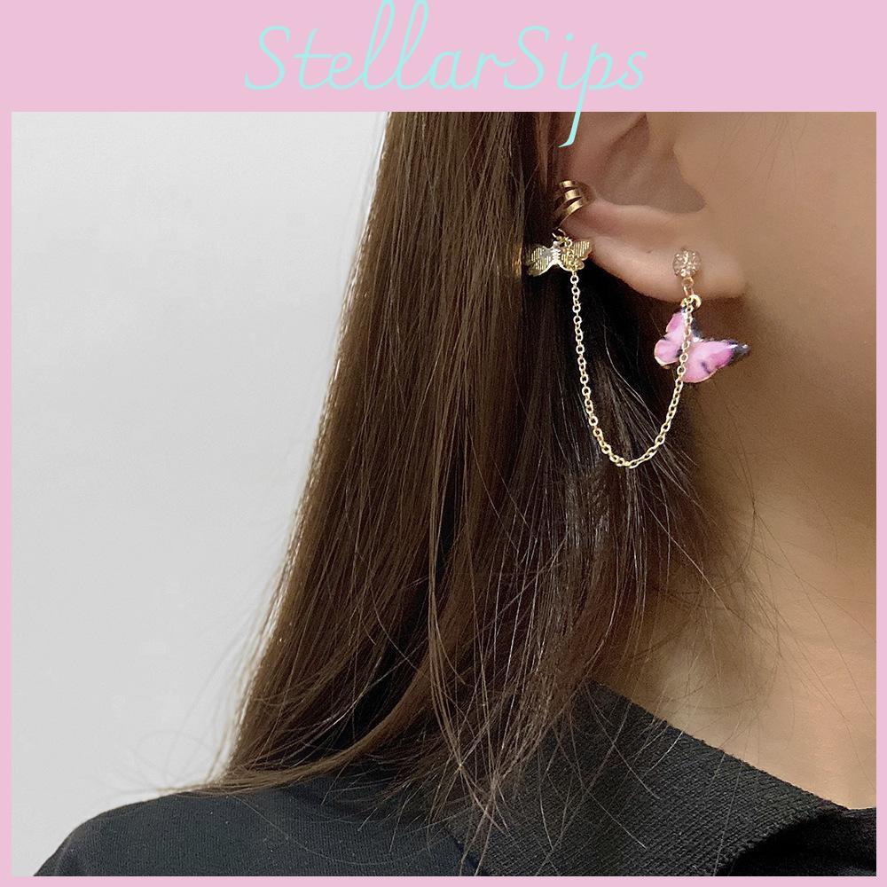 Statement Butterfly Chain Earrings Fashionable With Urban Street Style