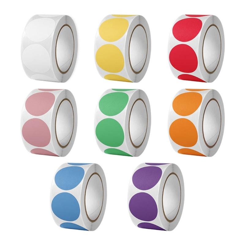 500Pieces per roll assorted color round sticker for sealing, color coding & organizing, crafted from coated copper paper with strong adhesion, widely used for office, school, warehouse, and home use.