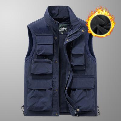 Winter Fleece Denim Vest Men Youthful Vitality Turn Down Collar Solid Color Casual Waistcoat Mens Cotton Warm Sleeveless Jackets