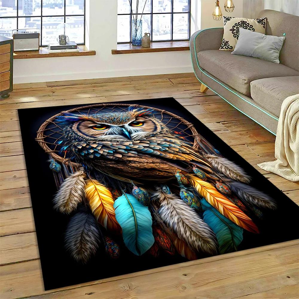 Colourful Cute Owl Cartoon Birds Carpet Rug for Home Living Room Bedroom Sofa Doormat Decor,Kid Play Area Rug Non-slip Floor Mat
