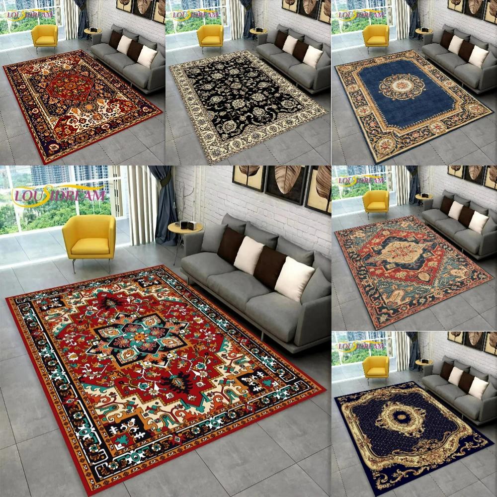 Red Turkish Floral Print Carpet Living Room Sofa Decor Bedroom Bedside Nonslip Rug Lounge Coffee Table Floormat Welcome Rug