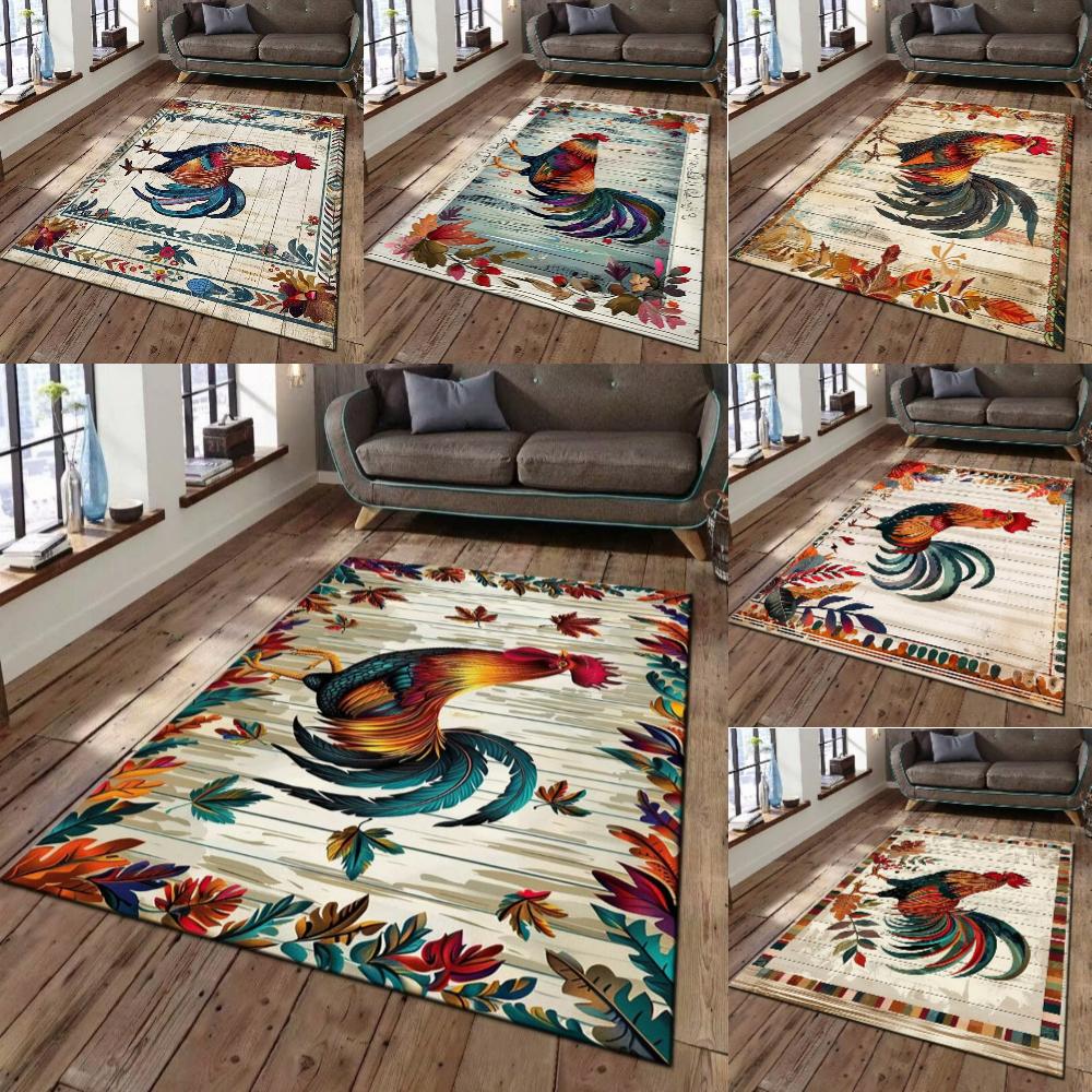 Retro American Large Rooster Carpet Living Room Sofa Decor Rug Kitchen Dining Table Floor Mat Farmhouse Rug Hallway Nonslip Rug