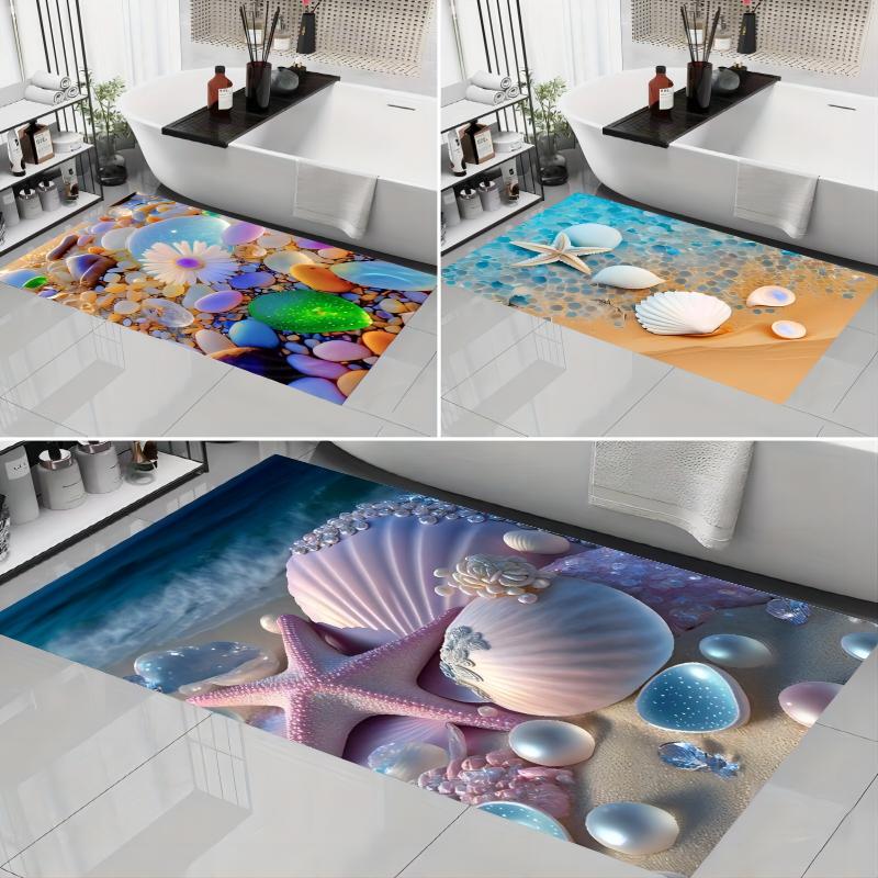 Starfish Shell Printed Bath Mat Non-slip Diatom Mud Footpad Bathroom Rug Super Absorbent Laundry Room Entrance Carpet Home Decor