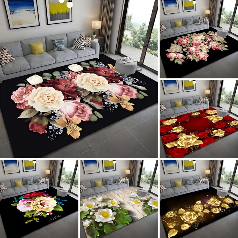Romantic 3D Floral Pattern Carpet Home Bedroom Floor Decor Big Size Mat Non-slip Coffee Table Area Rug Bathroom Washable Doormat