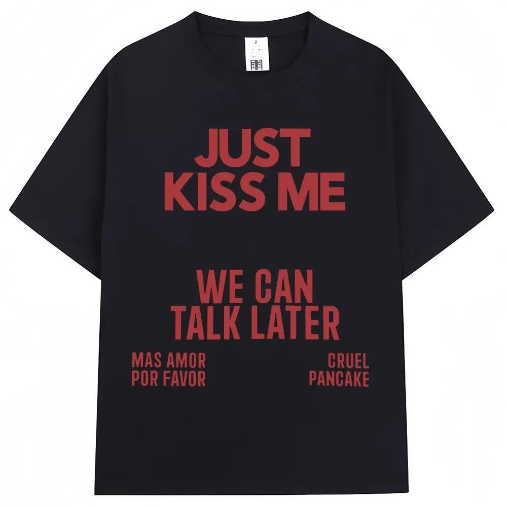Just Kiss Me We Can Talk Later T-shirt Women's Funny Jokes Fashion T-shirt Casual Summer T-shirt Cotton Best Selling Round Neck