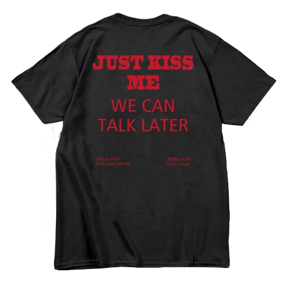 2025 Just Kiss Me Funny Graphic Print Cotton T-Shirt Positive Shirt Gift for Women and Men Casual Short Sleeves Plus Size Loose