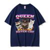 Vintage Queen Never Cry Cat Funny Meme Graphic T Shirt Men Women Casual Humor Silly Cats Lover T-shirts Cotton Short Sleeve Tees