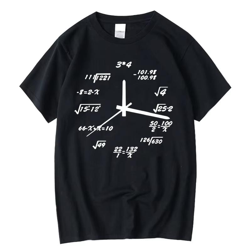 2025 New Men's T-shirt Pure Cotton Casual Math Clock Printing Summer Loose O-neck Short-sleeved Large Size High-quality Top