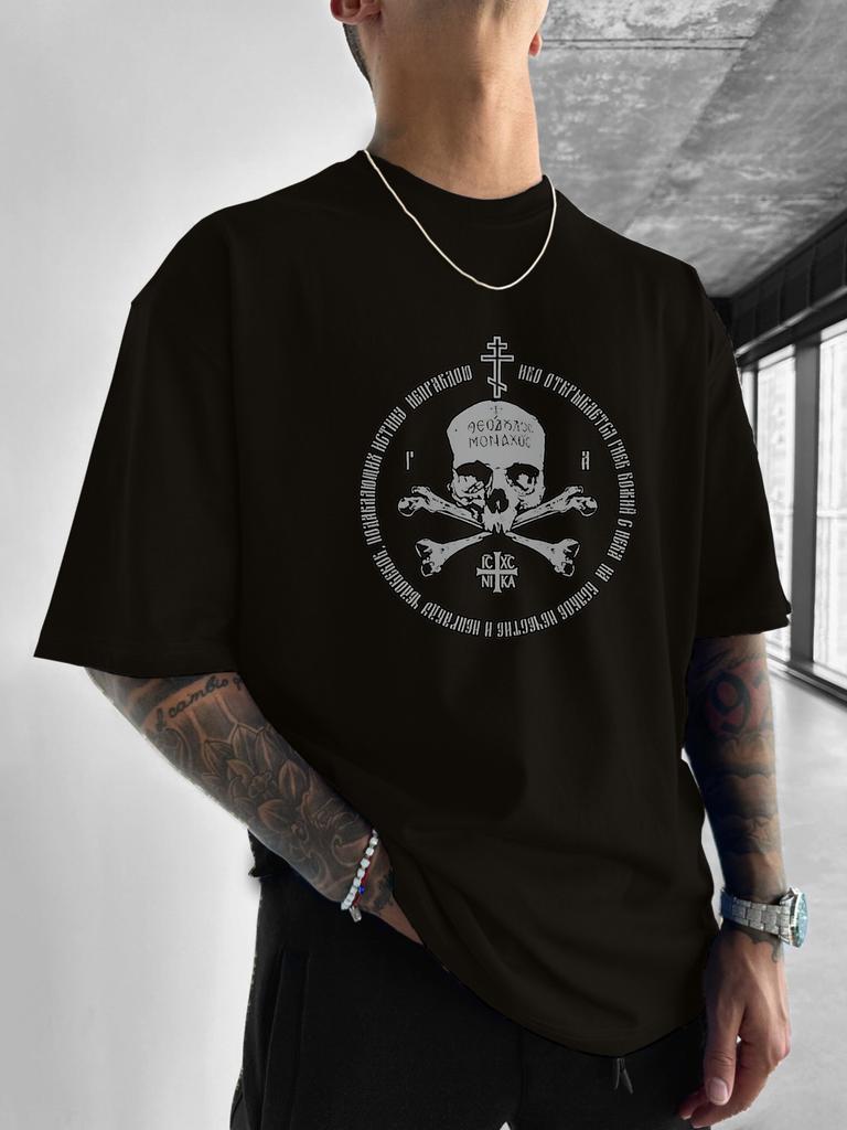 25 Summer Men's Popular Skeleton Cross Printed Round Neck T-shirt Versatile Casual Pure Cotton Simple High Quality Short Sleeve