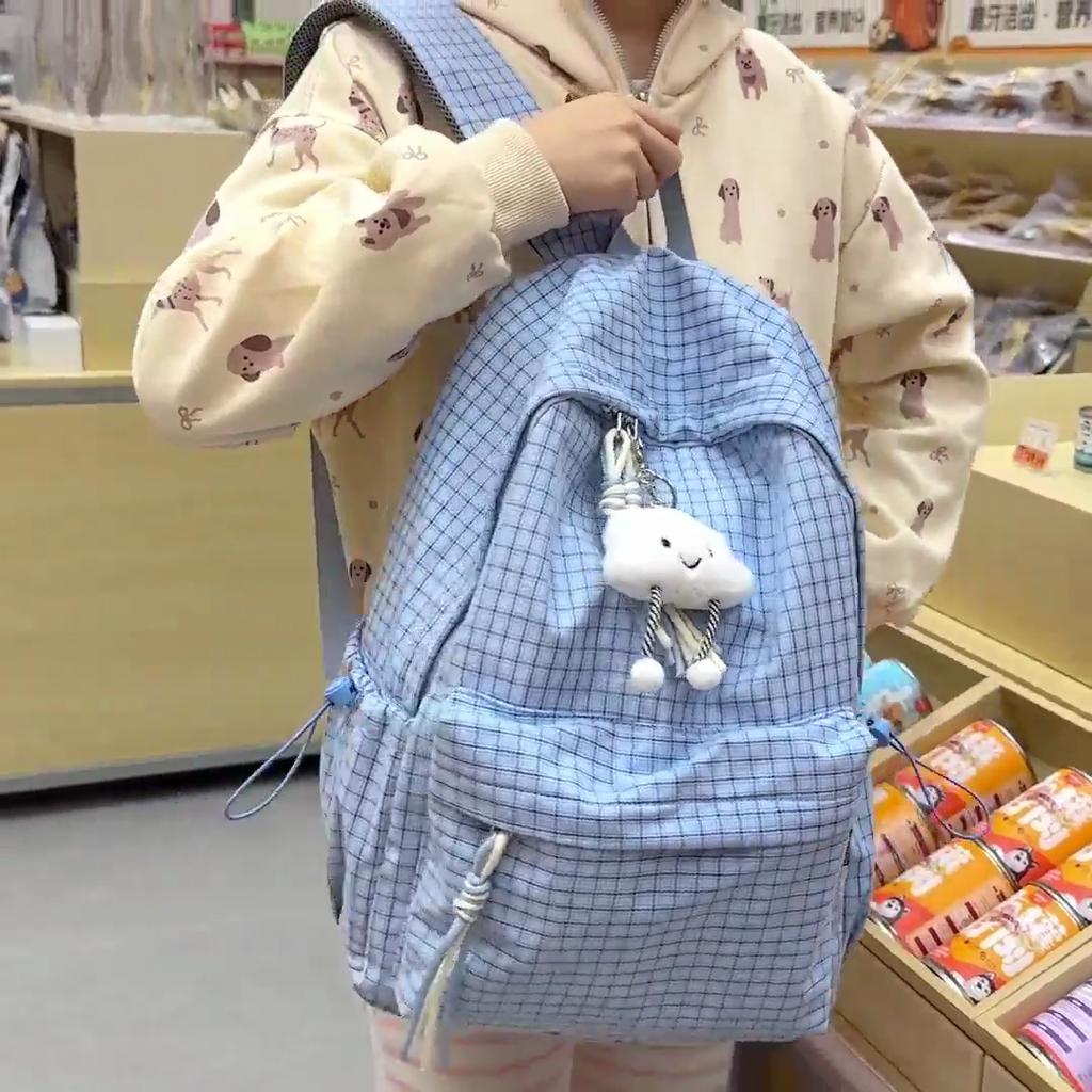 Student Schoolbag Women's Lightweight Water-repellent Plaid Backpack Travel Backpack