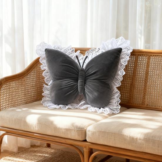 This standard-sized decorative pillow features an elegant 3D butterfly design with delicate lace trim, adding a touch of sophisticated glamor to any space. Its soft texture and raised butterfly motif create depth and visual interest, making it a standout accent piece.