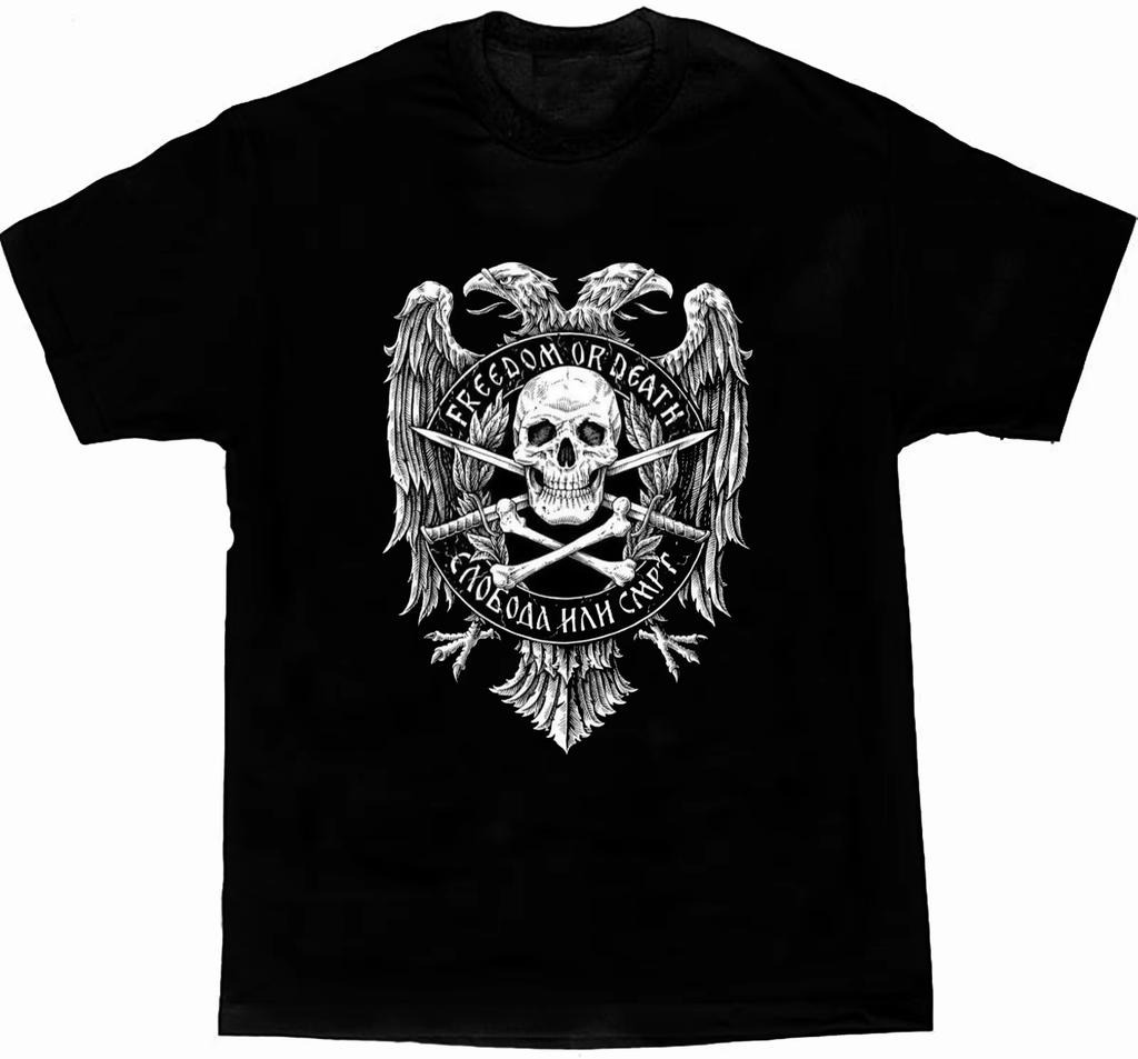 Freedom or Death. Double-headed Eagle Skull Design T-Shirt. Summer Cotton Short Sleeve O-Neck Mens T Shirt New S-3XL