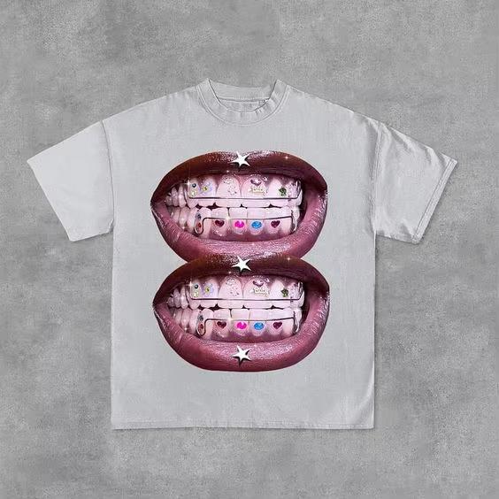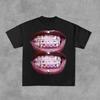 T Shirt Y2K Clothes American Hip Hop Teeth Graphic Print Oversized TShirt Womens Fashion Casual Round Neck Short Sleeve Tops