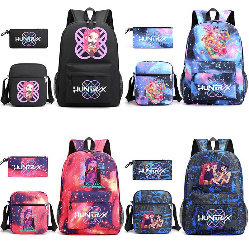 3Pcs/set Backpack with Shoulder Bag Pencil Case for Teenager Student Boy Girl School Bag Anime Printed Large Capacity Waterproof Bookbag Kid Gift
