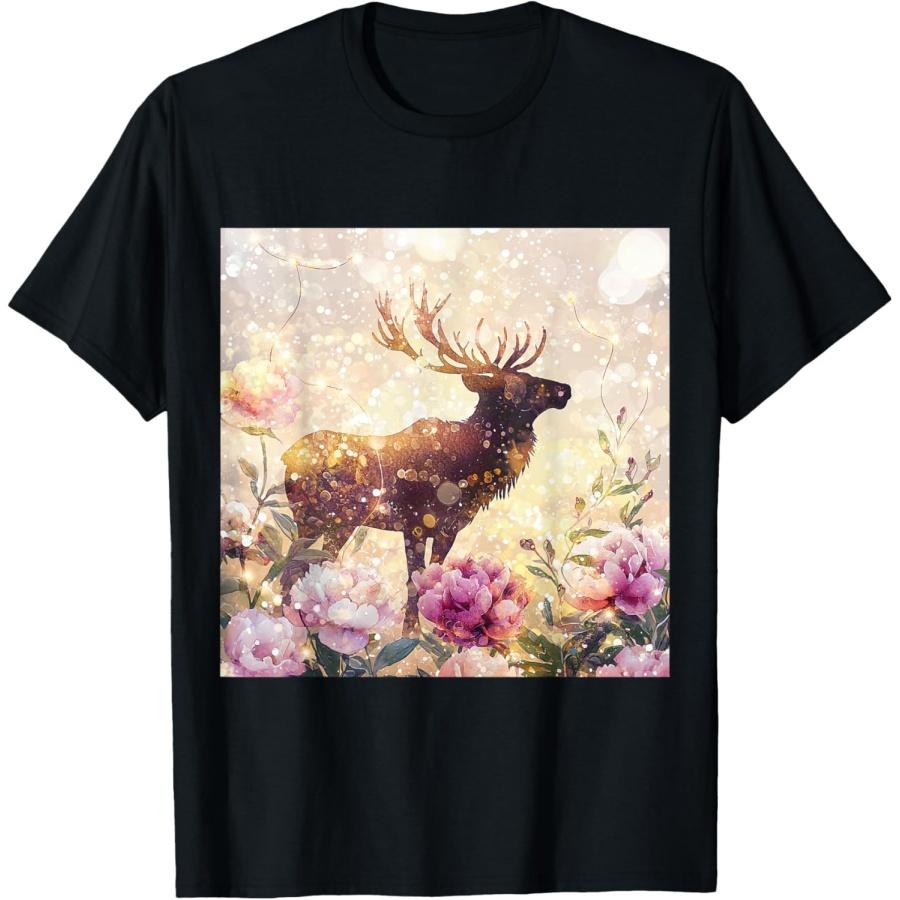 Elk Watercolor Flowers Art T-Shirt