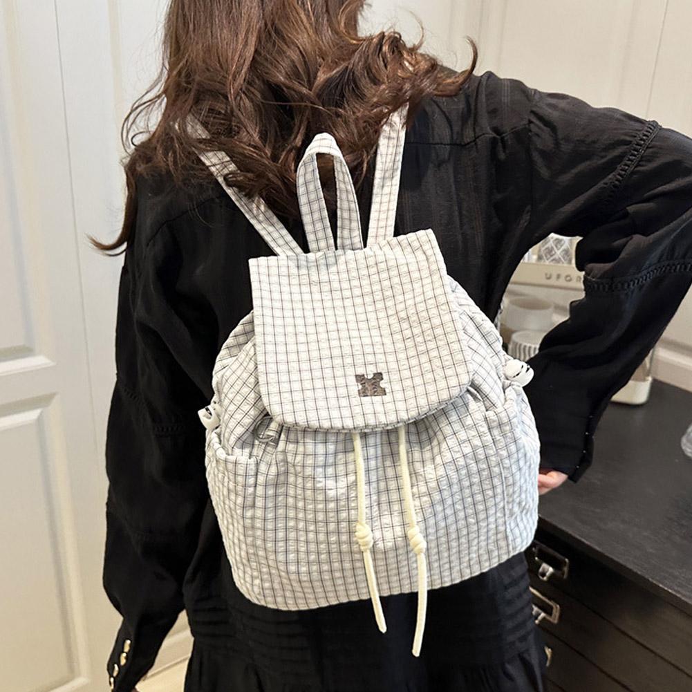 New Plaid Drawstring Backpack Korean Women's Casual Travel Student Bookbag Lightweight Mountaineering Backpack
