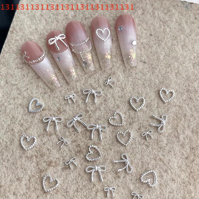 10pcs Alloy Bowknot Love Nails Art Charms Decorations 3D Luxury Metal Silver Bows Shaped Jewellery DIY Manicure Designs Supplies