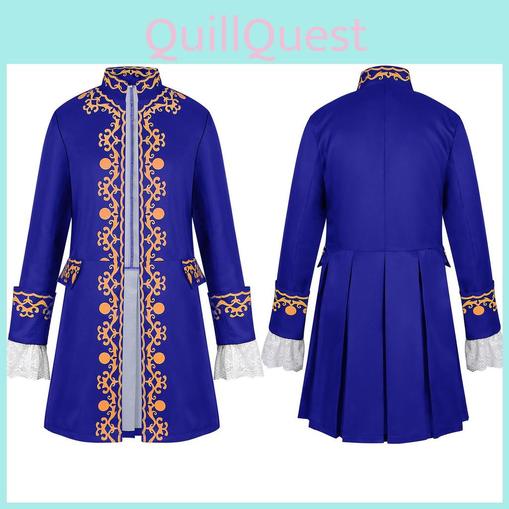 This prince-style coat features a detailed printed pattern crafted from durable polyester fabric,Designed with long sleeves and a tailored fit, it supports comfortable wear across all seasons. Ideal for stage performances, cosplay, or themed events, it offers a rich medieval aesthetic. Wipe clean with a damp cloth to maintain its intricate design.