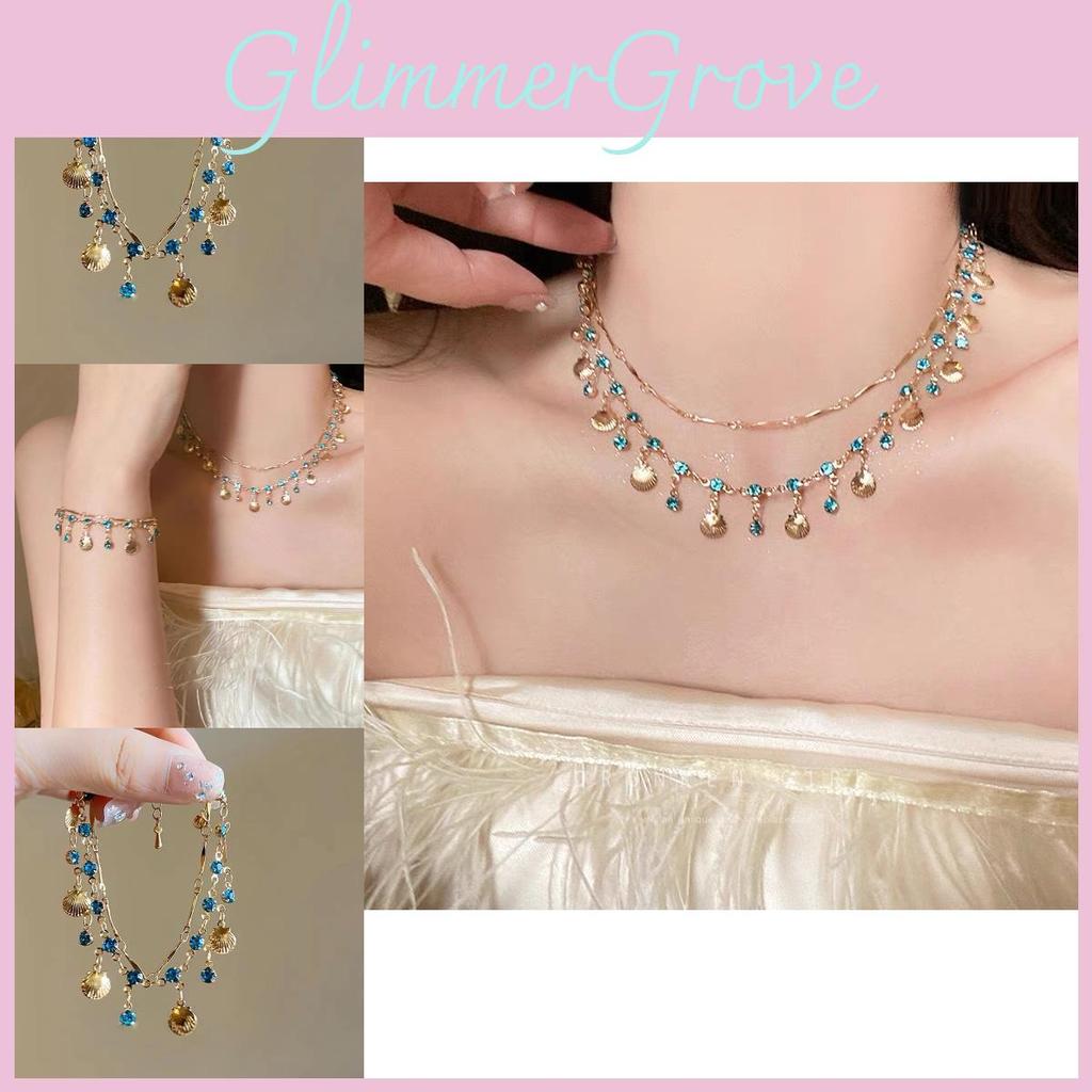 Vintage Artisanal Blue Shell Necklace With Zircon In Exotic Ethnic Style For Women