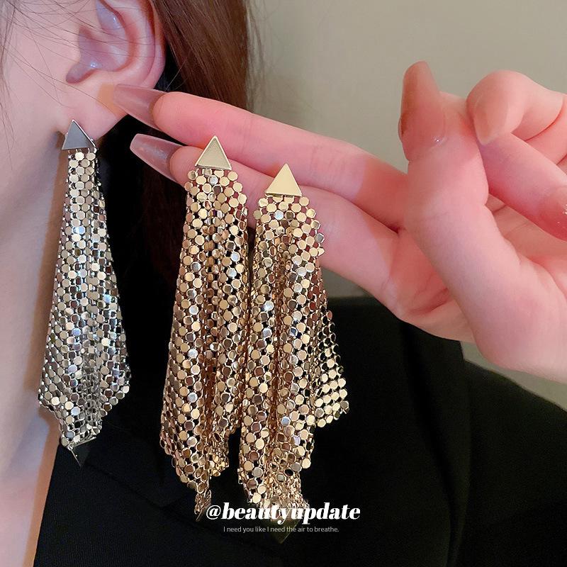 Silver Needle Irregular Triangle Sequin Dangle Earrings – Exaggerated Design Fashion Jewelry