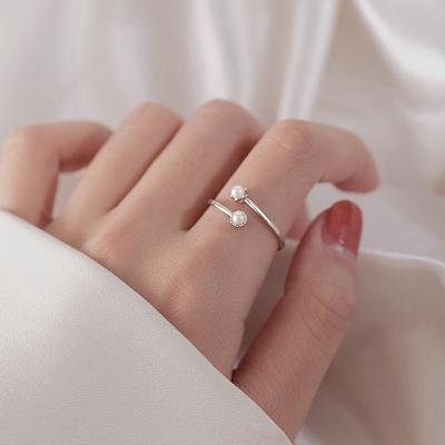 Korean Stylish Inspired Adjustable Pearl And Silver Ring For Women Modern Fashion 2023 Jewelry