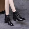 Fashion 2024 Autumn and Winter New Leather High-heeled Small Short Boots Women's Thick-heeled Nude Boots Short Ankle Boots Women Shoes