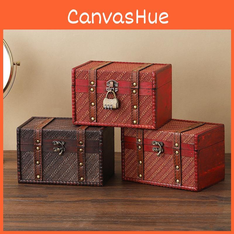 Lockable Wooden Organizer Medicine Box Password Protected Retro Woven Car Storage