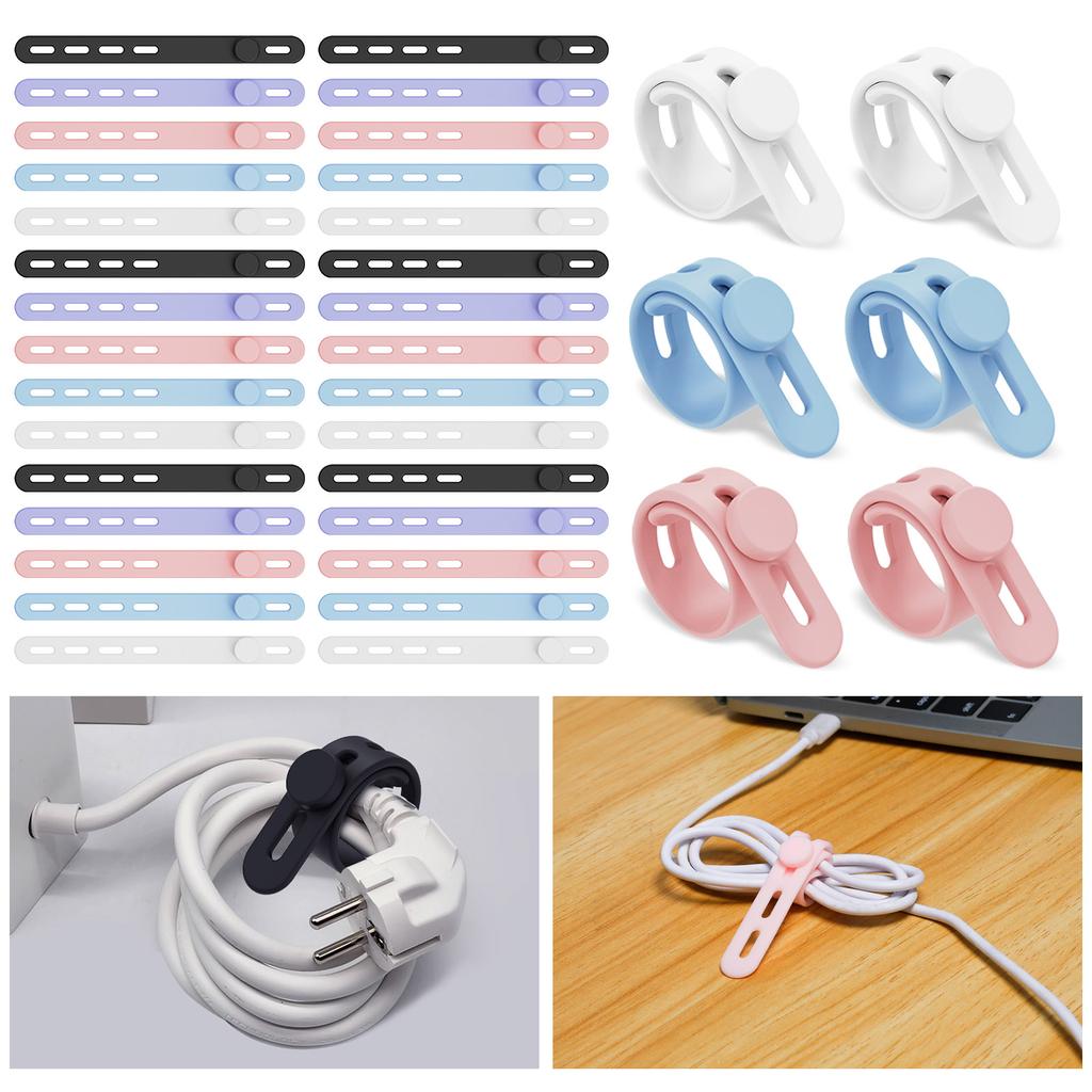 60/30Pcs Silicone Cable Ties Adjustable Cable Straps Black/Colorful Cord Organizer Reusable Cable Management Organizer Fastening