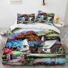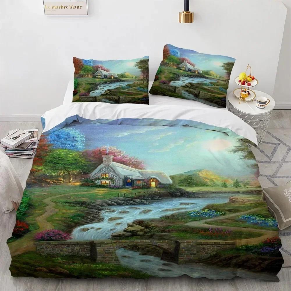 Beautiful Painting House Tree Comfortable Duvet Quilt Cover Pillowcase Bedding Set Children Bedroom Decoration Home Textile