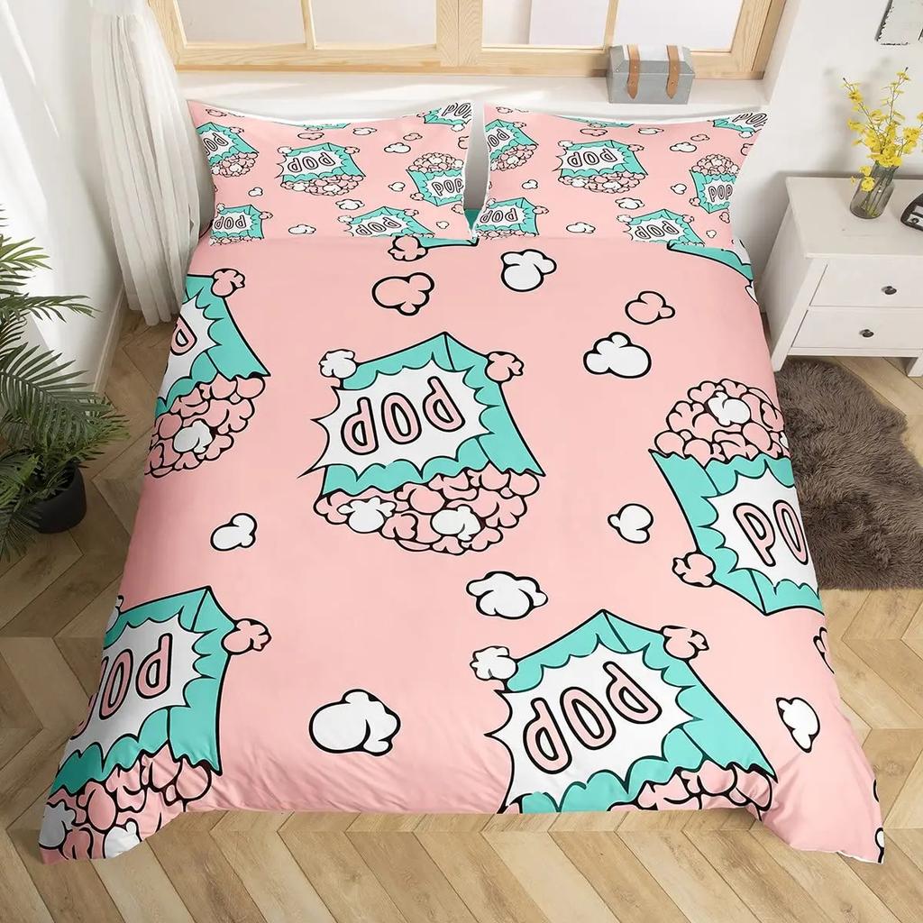 Popcorn Duvet Cover Movie Theater Food Bedding Set Microfiber Cinema Poster Comforter Cover Twin Full For Kids Teens Room Decor