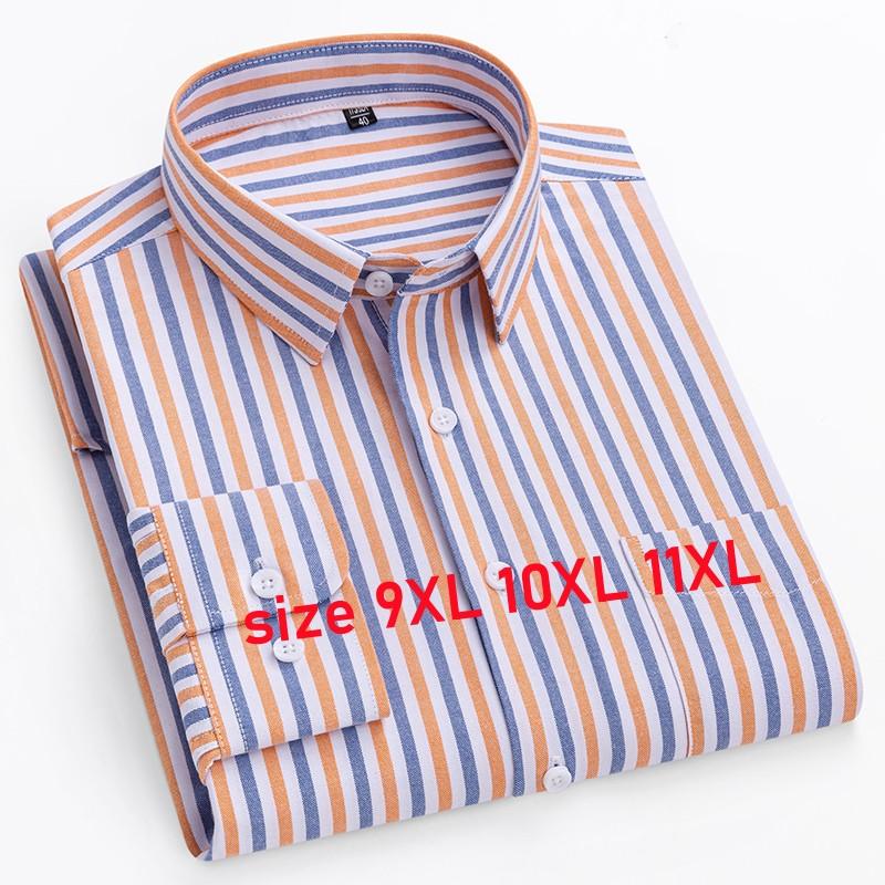 Men's Shirt Long Sleeve 100% Pure Cotton Oxford Dress Shirts Striped Regular Fit Casual Soft Male Blouse Clothing 11XL 10XL 9XL