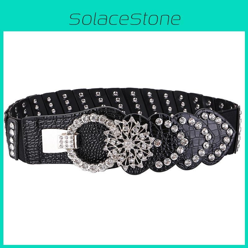 Fashionable Ladies Elastic Waist Belt With Sparkling Crystal Decor For Casual Wear