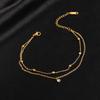 Kuziduocai 100% Stainless Steel New Fashion Jewelry 18K Gold-plated Minimalism 2-Layer Beading Zircon Charm Women Anklet Chain