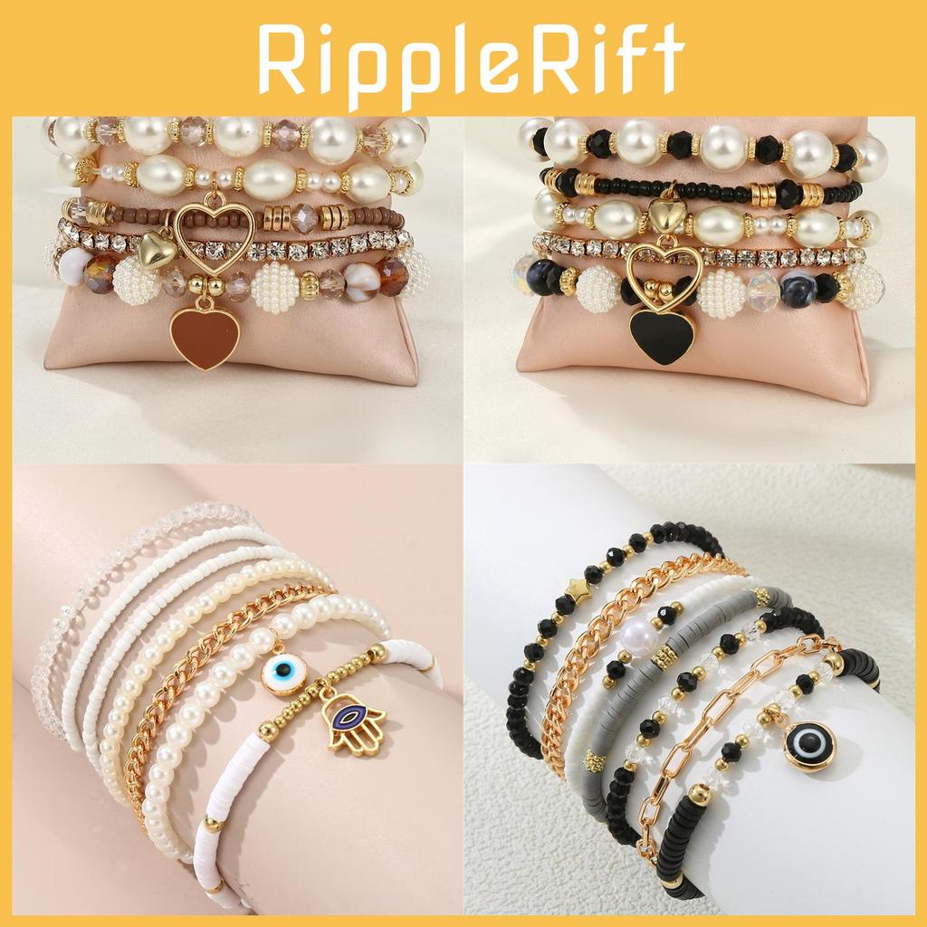 This style multi-piece bracelet set features handcrafted pearl beads and geometric shapes, delivering a delicate and fashionable look. Made of imitation pearl material, each bracelet measures approximately 6-19.5cm in length, with a subtle weight for comfortable wear. Perfect for gifting during anniversaries or special celebrations, these versatile accessories enhance casual or dressy outfits. Clean with a damp cloth to maintain their appearance.