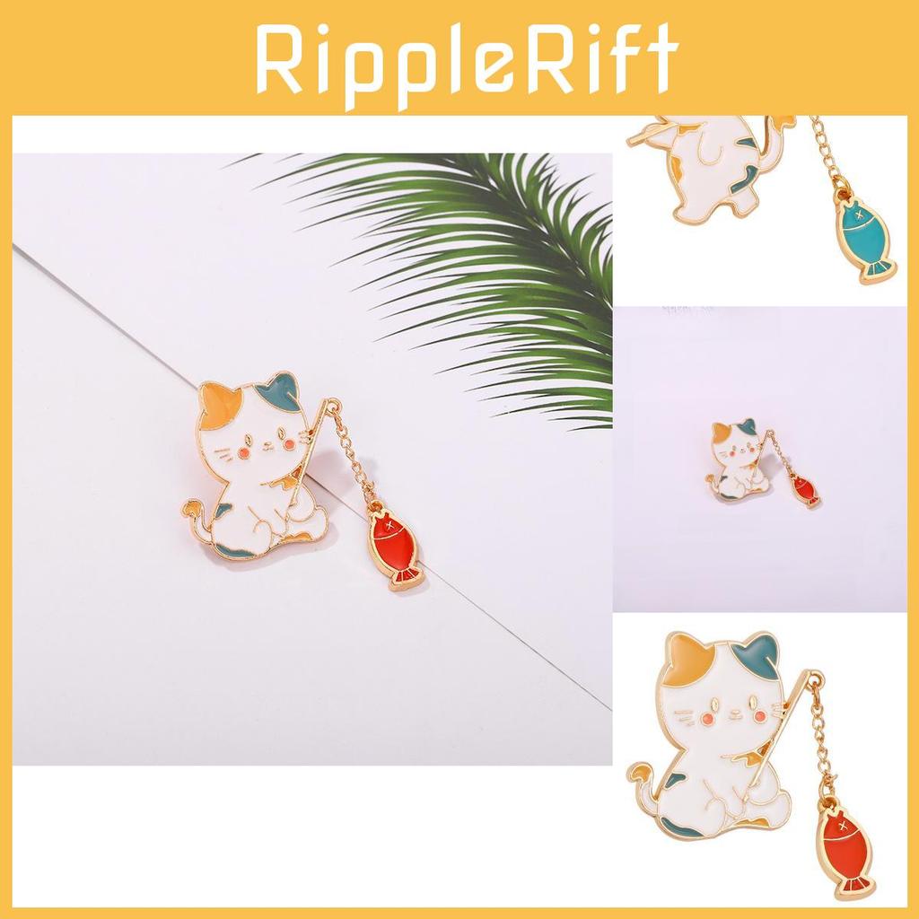 Unique Animal Inspired Metal Brooch Featuring Playful Cat And Fish Design Ideal For Sweater And Jacket Decoration