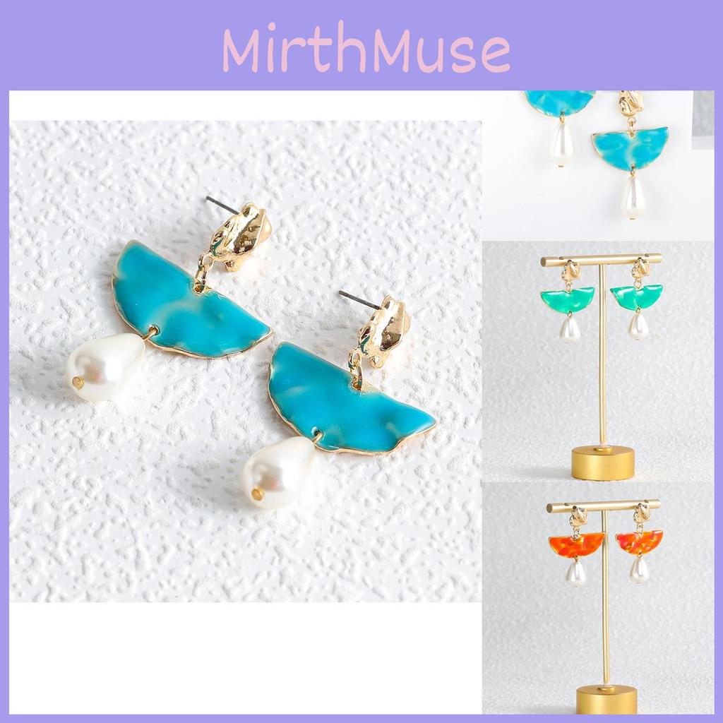 Inspired by European and American fashion trends, these earrings feature a unique geometric shape that exudes a sense of refined artistry. The semi-circle design is both chic and understated, allowing the lustrous pearls to take center stage. Available in striking hues of orange-red, sky blue, and green, these earrings add a vibrant pop of color while maintaining an air of elegance that complements any outfit. Whether you're dressing up for a wedding, celebrating a birthday, or simply want to elevate your everyday look, these earrings are your go-to accessory.