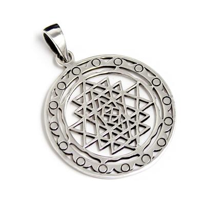 Yantra Indian Hinduism Amulet Divine Geometry Pen Top Pendant Silver