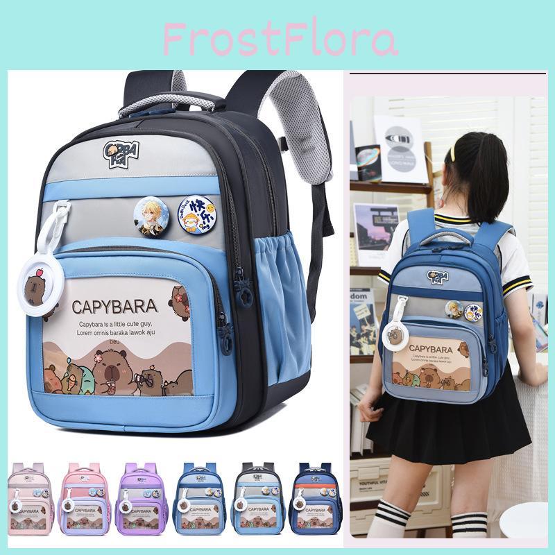 Capybara Pattern School Backpack For Kids With Durable Oxford Material And Comfortable Archshaped Shoulder Straps