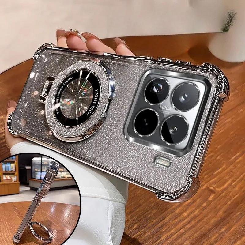 Luxury Glitter Magnetic Bracket Phone Case For Xiaomi 15T 14T 13T Pro Stand Protect Shell Shockproof Bumper Soft Silicone Cover