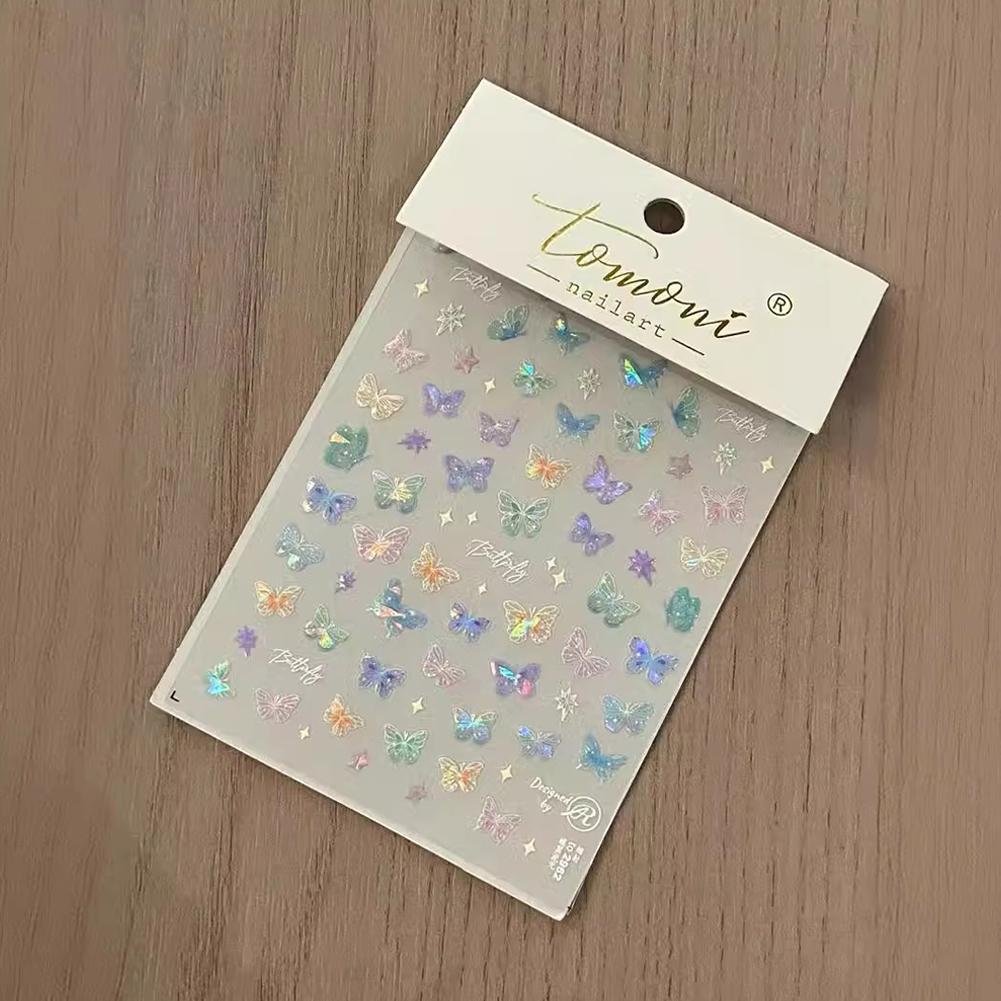 1PC Flash Butterfly Flowers 3D Nail Stickers Self-Adhesive Slider Nail Art Flowers Decorations Decals Manicure Accessorie