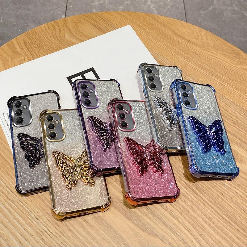 Plating Shockproof Butterfly Holder Phone Case For Samsung Galaxy A04E A04 A14 A24 A34 A54 A73 A53 A33 A23 A13 4G Glitter Cover