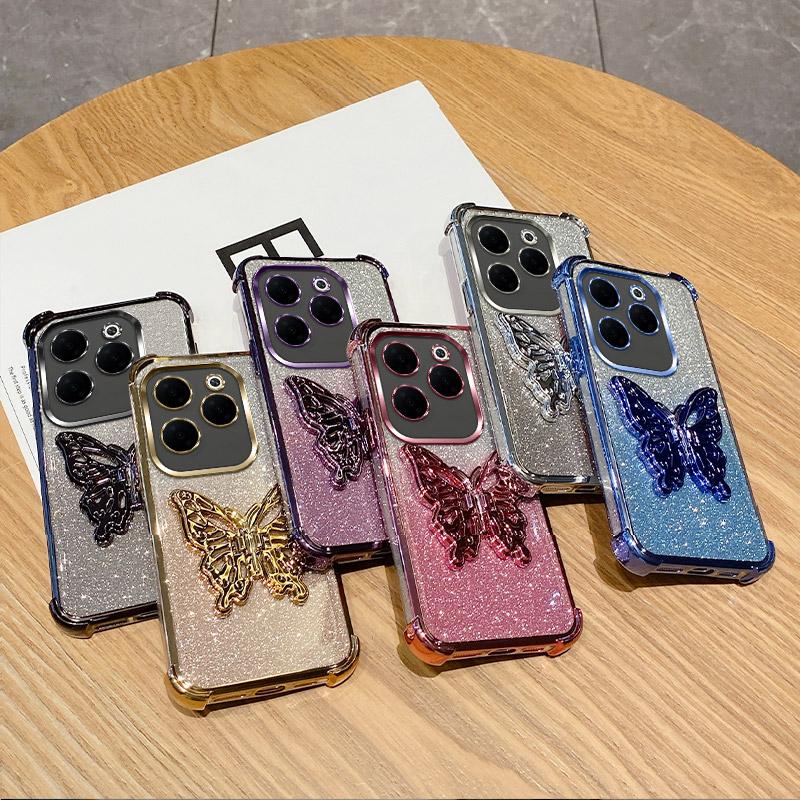 Luxury Plating Shockproof Butterfly Stand Phone Case For Infinix Hot 40 Pro 30 30i 40i 10S NFC 10 Lite 9 Play Glitter Soft Cover